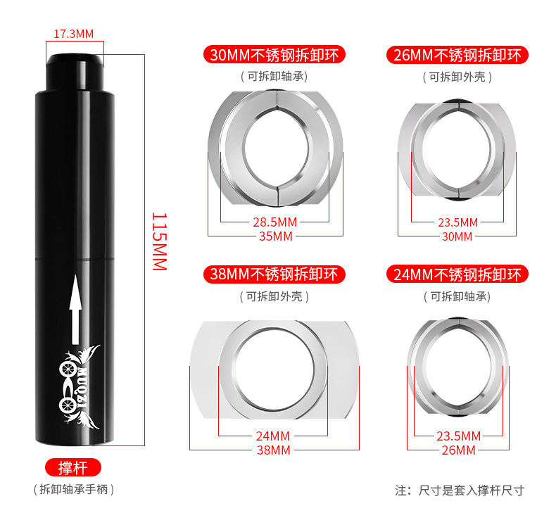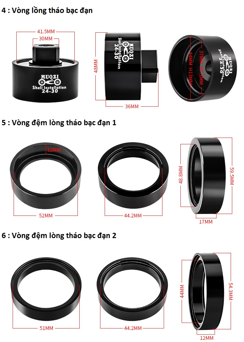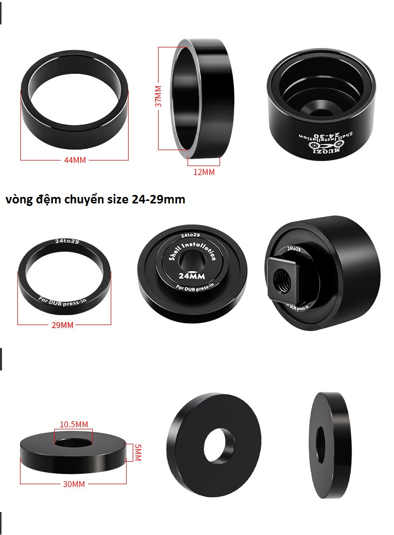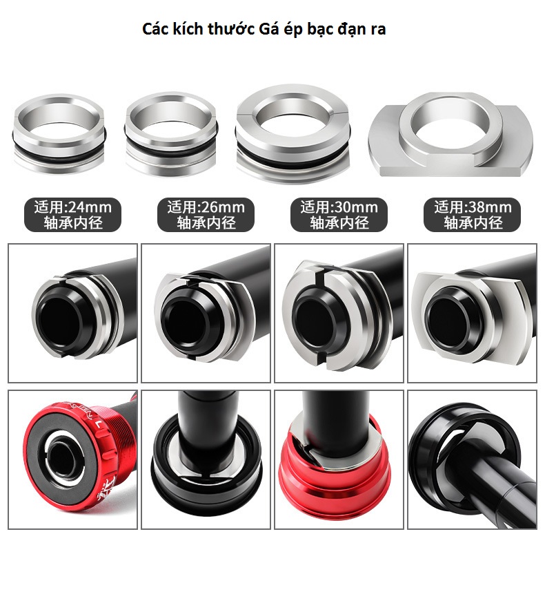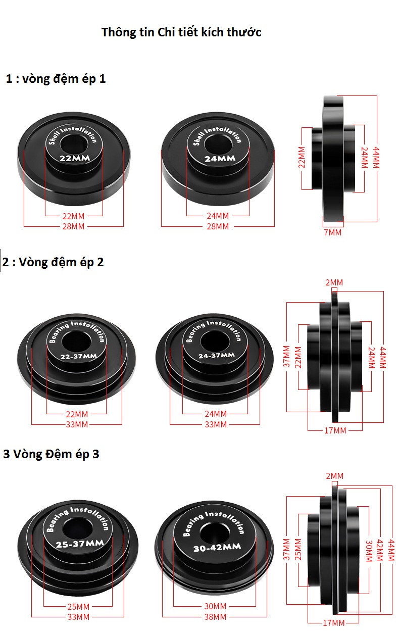 Bộ dụng cụ có nhiều cỡ bi có thể tháo được khác nhau như 6805 , 6806 , thông số các trục ép như BB R92/T86 , bb30 , bb24 ,pf30 , bb386 , bb91 .... đa số các dòng trục ép cũng như trục rỗng gien vặn hiện nay .