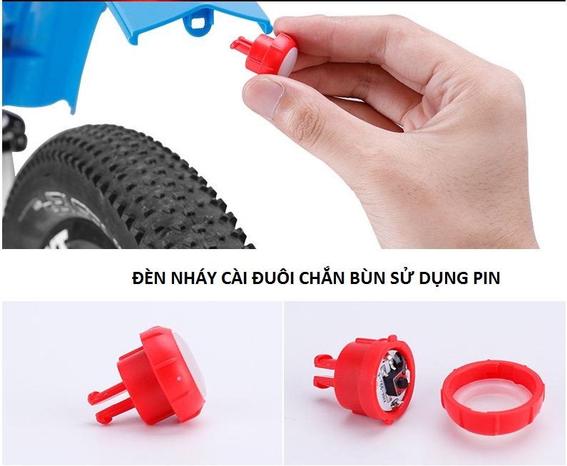 Được trang bị thêm một đèn nháy cảnh báo phía sau chắn bùn , tiện dụng khi trời không mưa có thể rút gọn lại không vướng khi lên xuống xe , chắn bùn ôm sát theo vòng bánh . nhựa sử dụng loại nhựa pp loại nguyên sinh ,